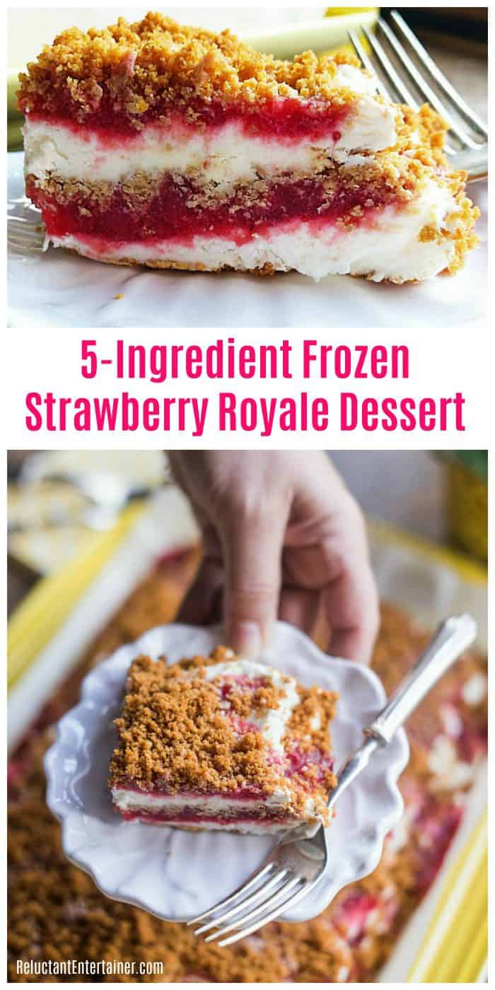 Whipping cream and pureed strawberries team up in the dessert while greek yogurt lightens the mixture and balances the flavors.
